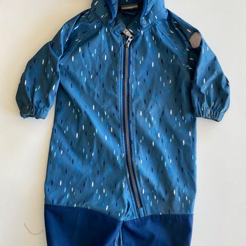 Brukt av ett barn, én sesong. Litt falmet på knærne som vist på bildet, men hel og fin ellers.