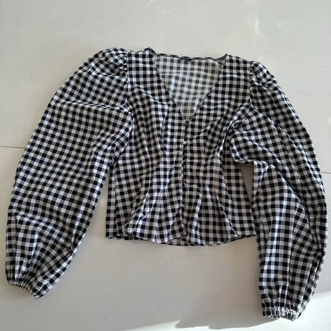 Gina Tricot bluse i størrelse S med flerfarget mønster.