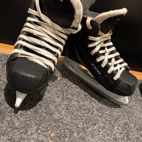 CCM ishockeyskøyter for barn i størrelse 33.5 Skøytene er designet for ishockey og har tradisjonell snøring. Passer til barn som spiller ishockey eller ønsker skøyter til isaktivitet. Blitt bruk på islagte vann på hytta