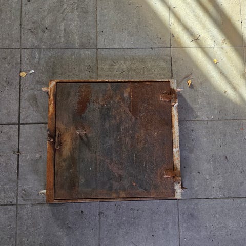 Sotluke/feieluke til salgs. Dobbelvegget fra 50/60-tallet, brukt i teglsteinspipe. Klar til bruk.