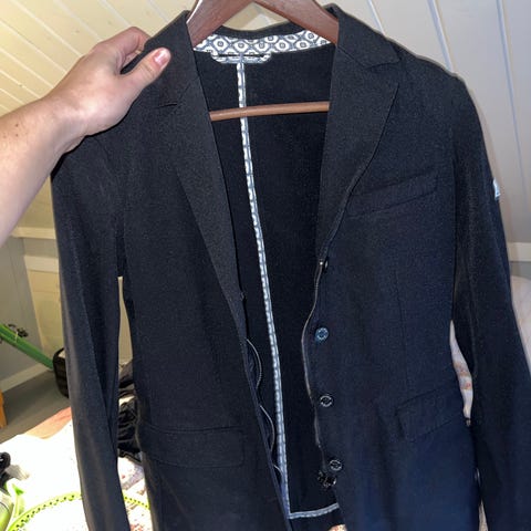 IT40,- tilsvarer størrelse 34. Jeg er en 36 og den har sittet fint på meg, kanskje litt kort i armene og passer derfor bedre en 34.