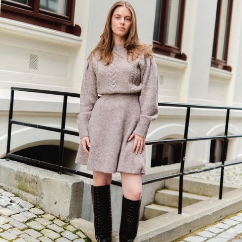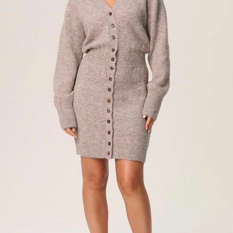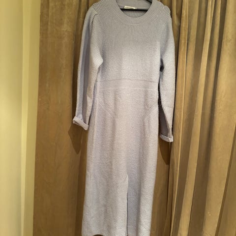 ADOORE Hverdagskjole i ull, størrelse 34, i fargen hvit. Kjolen har ribbestrikket tekstur og lang erm, med splitt bak. Egnet som hverdagsplagg for kvinner.