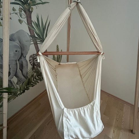 Pent brukt hengevugge fra Natures sway selges☁️🫧 Følger med motor fra Moonboon (original, versjon 1.0). Det følger også med stativ som er fra Leander, samt oppheng slik at den kan henges i dørkarm. Madrassen har trekk på som kan vaskes, men selve madrassen skal ikke vaskes. Har alltid hatt beskyttelseslaken på, slik at madrassen under er helt ren. Sendes ikke, men ved rask avgjørelse kan jeg evt møtes på strekning Kr.sand-Oslo ☺️
