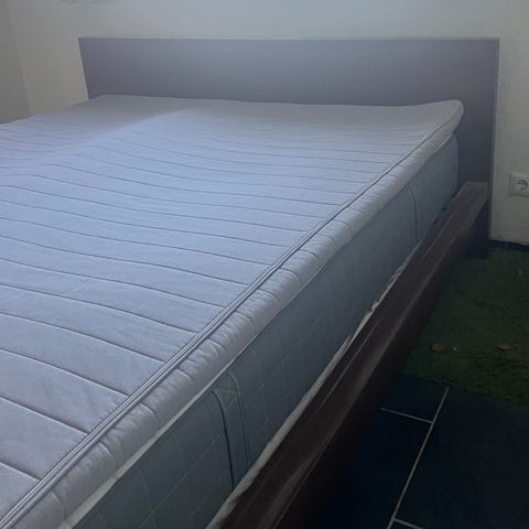 Seng og madrasser selges samlet. Er bruksmerker på både seng og madrasser, men funker veldig fint.