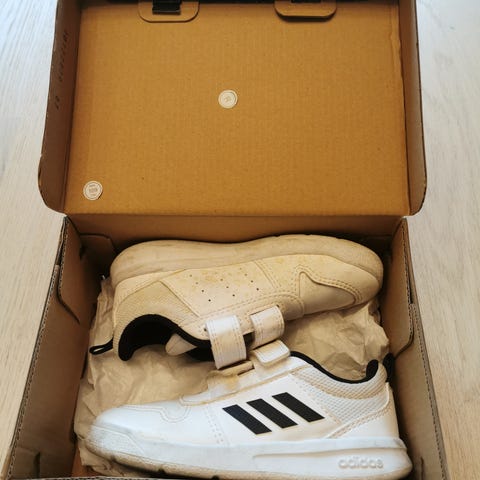 Adidas unisex sko i størrelse 38. Skoene har svart overdel med hvite detaljer og gummisåle. Egnet for daglig bruk.