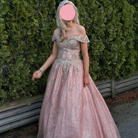 Modellen er 174 cm høyt. Kjolen er til 165 cm og oppover.