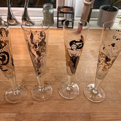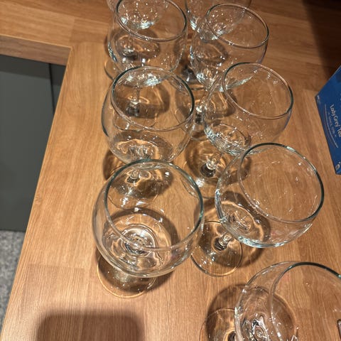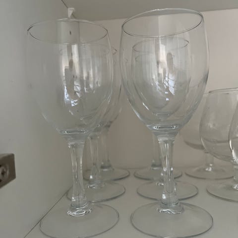 IKEA stor rødvinglass med dekorative mønstre, laget av klart glass. Passer til servering av vin og andre drikker.