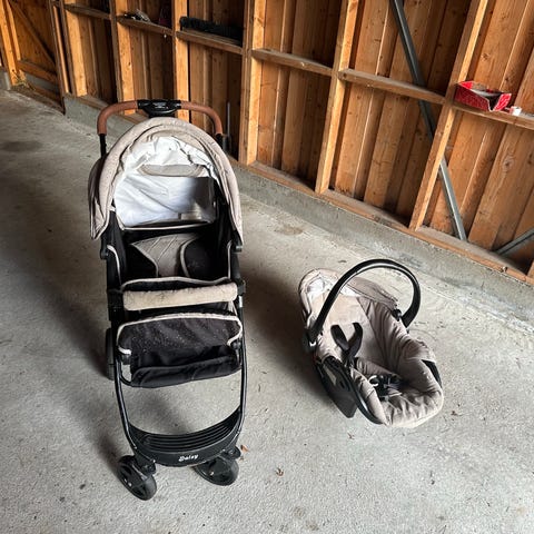 Det er babyvogen med bilstol.