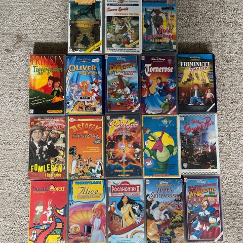 Samling av DVD-filmer med ulike barne- og familiefilmer. Inkluderer titler som 'Fornuft og følelse', 'Pusur', 'Madagaskar', 'Donald Duck', 'Maia bien', og flere.