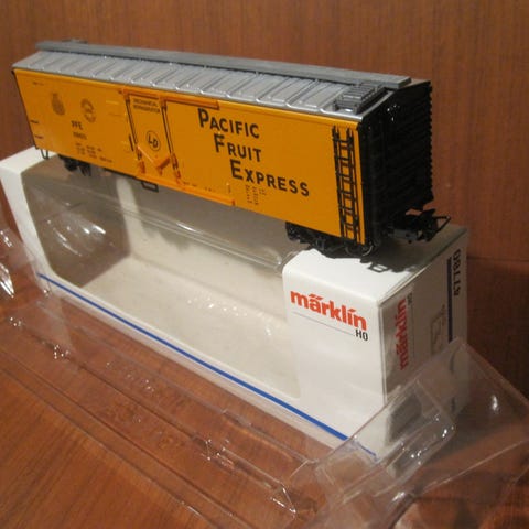 8623 Märklin Mini-Club Z-skala tysk brun og sølv skyvetak og skyveveggvogn