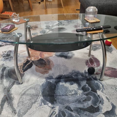 Selger et salongbord med glassplate.