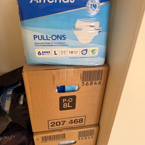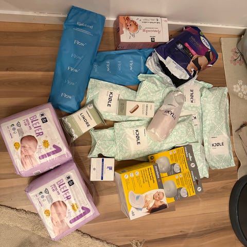 I tillegg noen åpnede pakker med bleier, truser og innlegg.