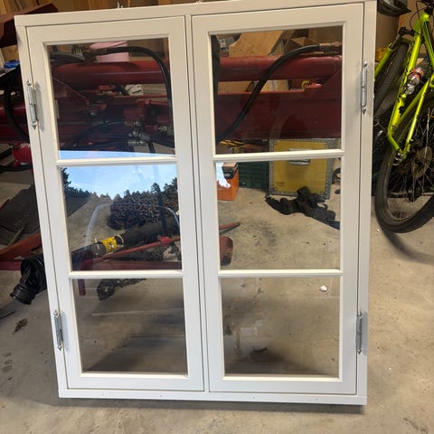 Ubrukt ytterdør selgast utan karm. Dårlig liming av ytterste laget på døra, sjå bilder. Ny pris 14000,- selgast utan karm kr 3000,- fiskebeinsmønster. Rørosrød.