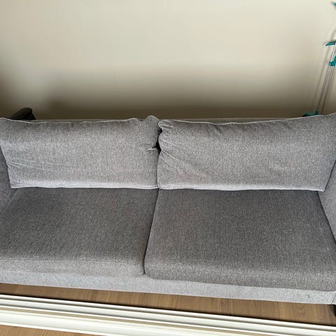 Den er lett å plassere og enkel å flytte på. Putene på bildet følger ikke med, men hvis er interessert i de også så kan det gå. Sofaen hentes på adresse gjennom kontakt og betales med Vipps. Den er lett å bære med 2 personer.