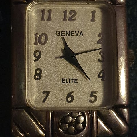 Skagen dame klokke med svart skinnreim. Klokken har et rektangulært urskive og en minimalistisk design. Passer til daglig bruk og formelle anledninger. ikke brukt, Batteri må skiftes.