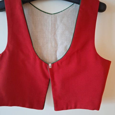 Materialpakke til cap til Vestoppland bunad. Capen er tosidig med blå på den ene siden og rød på den andre. Designet er tradisjonelt og passer til bruk med Vestoppland bunad. Selger denne litt billigere siden det ikke følger med noe sytrå, det må man kjøpe selv. Ny pakke hos Husfliden: 4100 kr