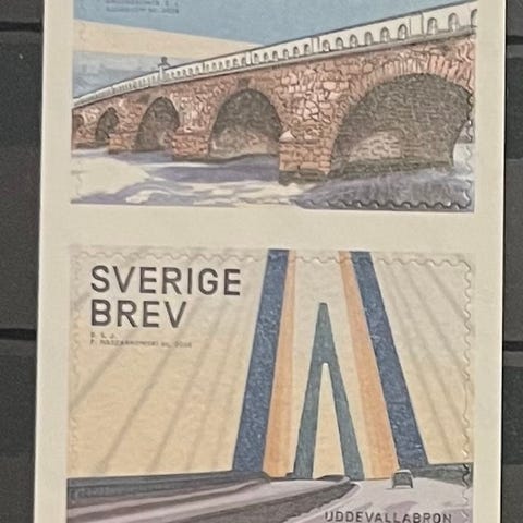 6 vakre merker med motiver fra Gamla Stan. Pålydende = sek 78
