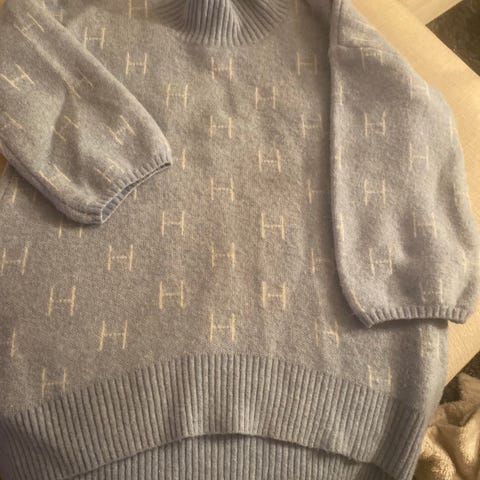 Lang Hest genser i en svak grønnfarge.