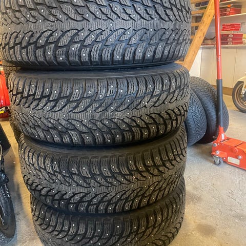 Godt brukt. Ca 1 sommersesong igjen av dekkene. 2 dekk med nesten 5 mm mønster. 2 dekk med ca 4 mm mønster, som det ene er skjeft slitt. Laveste mønster på det skjev slitte er ca 1,5 mm