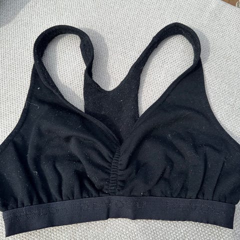 Devold sports-BH i svart farge, laget av ullmateriale. Størrelse XL, designet for kvinner.