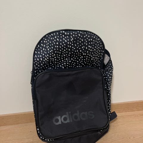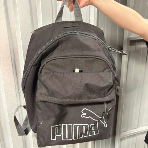Fin Puma ryggsekk byttes i f.eks 3 store brus uten sukker. Sekken er svart med blomstermotiv. Den har to innerlommer, en lomme i front og nett på siden til flaske. Ryggsekken passer både til skole og fritid.