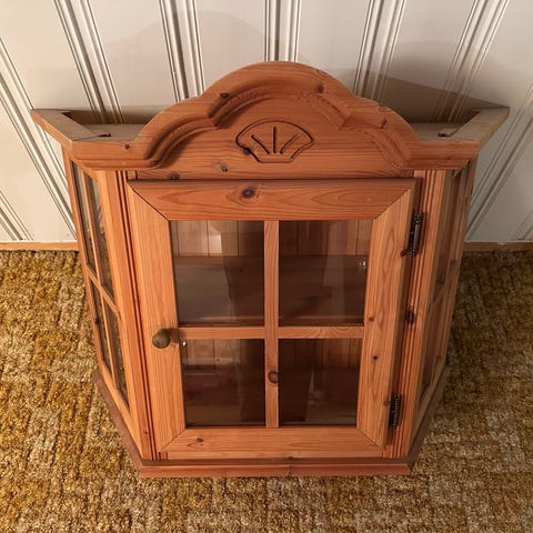 Brukt vitrineskap fra Jysk selges. Skapet har noen små skrammer etter flytting, og noen merker etter bruk.