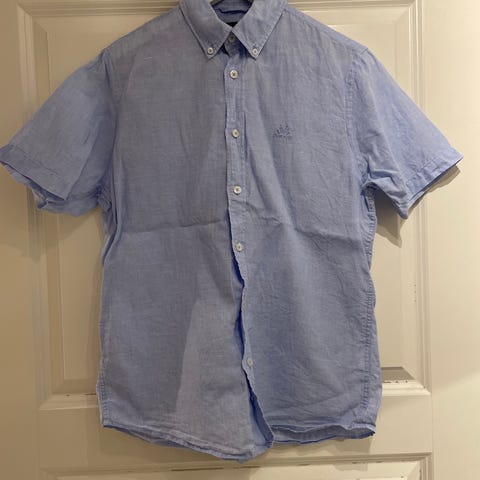 Jean Paul Lin Skjorte i blå farge, størrelse L. Laget av 100% linmateriale. Skjorten har kort erme og knapper foran.