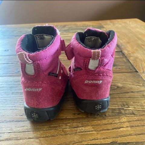Ponny gortex vintersko i størrelse 21. Sko er rosa og har borrelås for enkel justering. Designet for å gi god beskyttelse og komfort til barnets føtter.