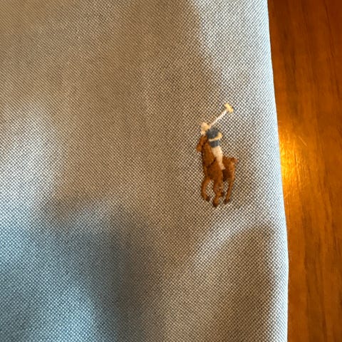 Ralph Lauren Classic Fit skjorte i blått, størrelse XL. Laget av bomull. Skjorten har kort erme og knappestolpe foran.