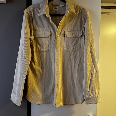 Selger en pent brukt kordfløyelskjorte fra Levi's. Den er brukt maks fire ganger og fremstår derfor som ny. Den har en nydelig flaksegrønn farge. Relax fit.