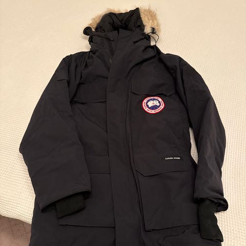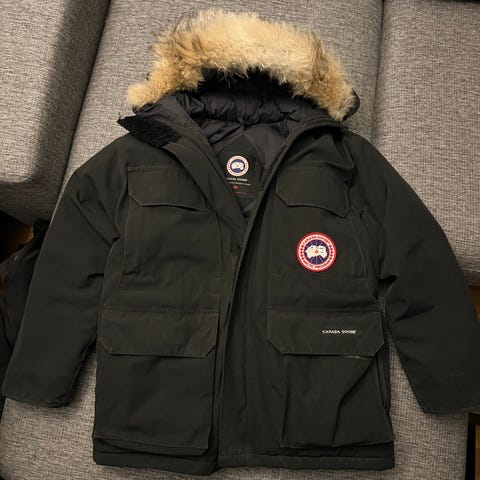 Canada Goose Expedition S jakke i svart farge, laget av dun. Jakken er kun brukt noen få ganger og fremstår nesten som ny.