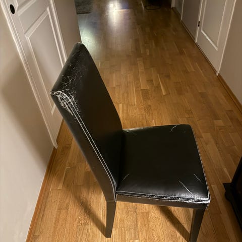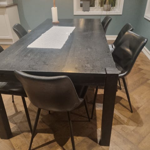 Pent brukt. Noe slitasje i maling på bordplaten. Et malingsstrøk på den, så er spisegruppen veldig fin.
