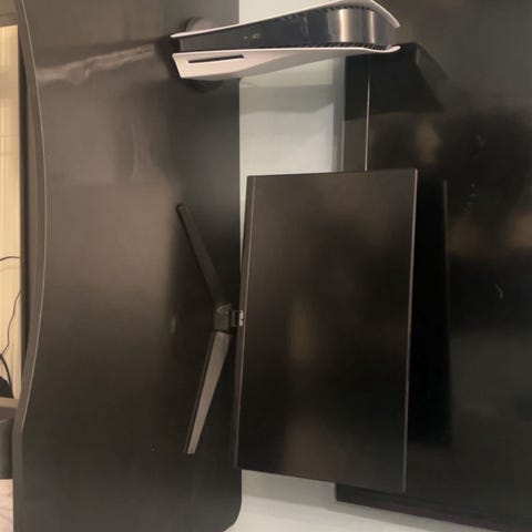 Gamingdesk-en har innebygde lys, som gir den en kul gaming-look. Bordet har også koppholder og stativ til headset.