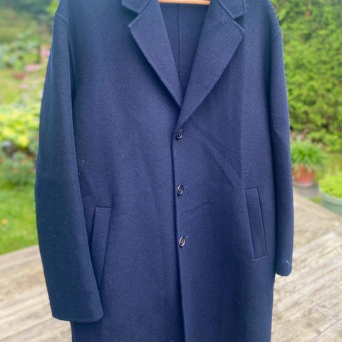 Frakk fra Acne Studios - Garret i navy, størrelse 46. Klassisk design med tre knapper i front.