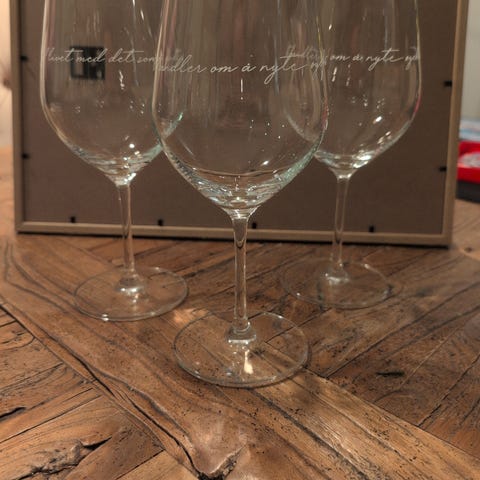 Glassene er utformet slik at en både kan nyte rødt og hvitt, men også lekre å servere en frisk juice