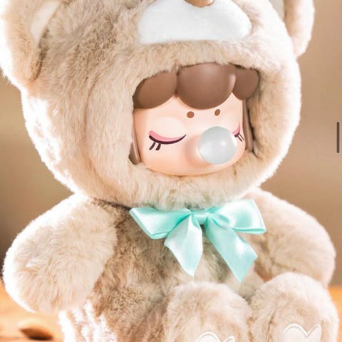 Du kan skifte øynene ved å rulle på de og de har begge anheng. Jeg har lille bjørnen og den rosa Grisen. Kjempe søte. Ca 22 cm.