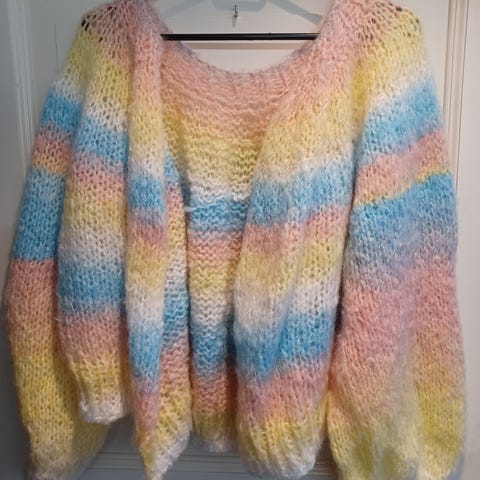 Ubrukt hjemmestrikket trøye til salgs. Strikket i Snowflake. Str S. Tykk og god trøye. Lengde 63 cm. Arm 46 cm. Overvidde 80 cm Til salgs kr 1000. Kan sendes mot at kjøper betaler frakt.
