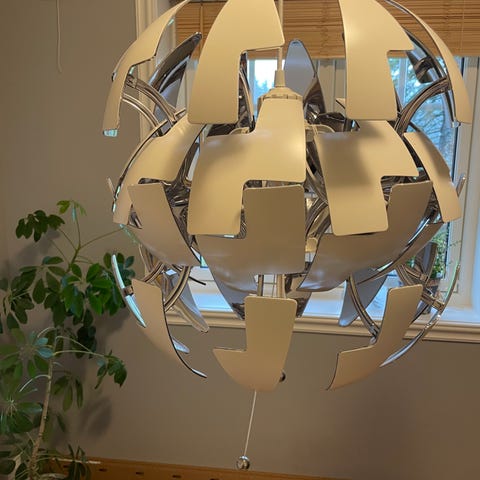 Taklampe i glass selges. Regulerbar lengde.