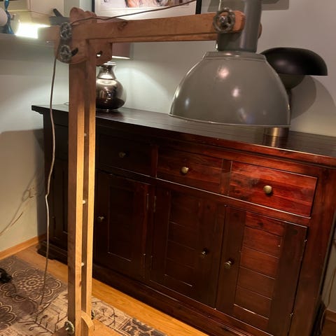 Stor buelampe i krom og med marmorfot. Frantzen lighting AS. Dimbar, virker fint. Justerbar lengde.