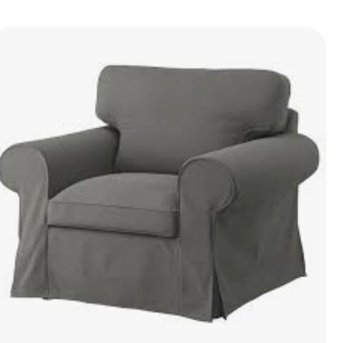 Jeg tror ikke dette trekket selges til Ektorp lenestol lenger, så det er noe hvitere enn det som er avbildet på screenshoten fra IKEA. Der ser man Kilanda lys beige, som er det nærmeste man kommer om man skal kjøpe nytt trekk nå. Trekket er avtagbart og kan vaskes i vaskemaskin. Det har ingen flekker.