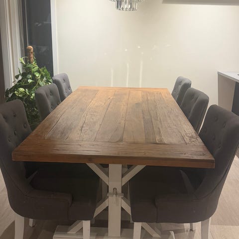 Pent brukt spisestue med 6stk spisestuestoler.