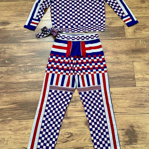 Et elegant og fargerikt strikket sett til dame.