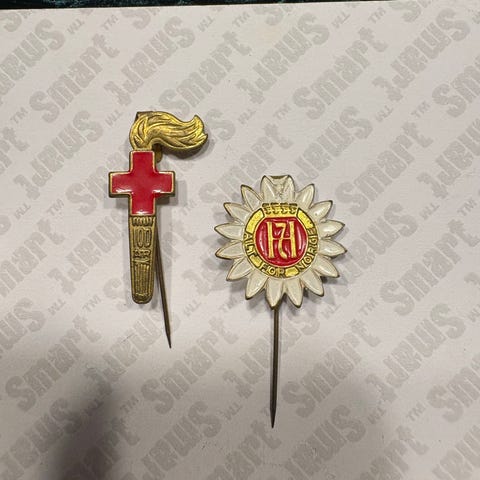 Selges gamel frakkeskjold, frakkemerke i sølv, 830s.