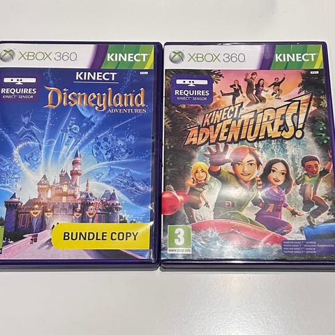 Microsoft Xbox 360 Kinect spillpakke med ulike spilltitler inkludert Your Shape Fitness Evolved, Dance Central 2, Zumba Fitness, Kinect Sports Season Two, Michael Jackson The Experience, Star Wars, The Black Eyed Peas Experience, Kinectimals og Disneyland Adventures. Spillene krever Kinect-sensor for Xbox 360 og tilbyr ulike trenings-, danse- og underholdningsopplevelser.