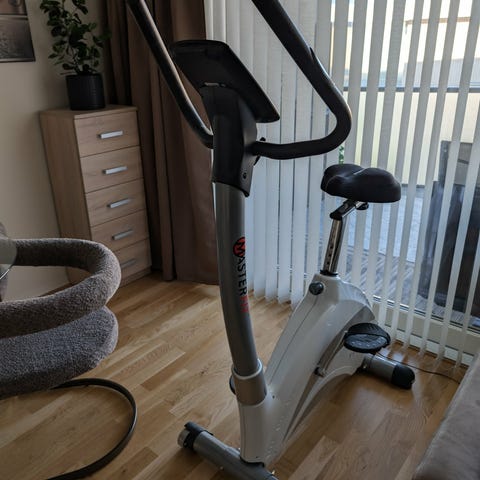 Wise W-5500 Puls Pro trimsykkel i svart farge. Utstyrt med digital skjerm for tid, hastighet og kaloritelling. Sykkelen har justerbart sete og håndtak, egnet for innendørs trening.