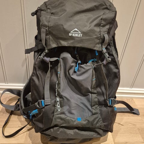 Har fått ny sekk så derfor selger jeg. Rygg-justeringen har jeg ikke fått til mens den har ligget i boden - men den fingernemme får vel satt metallstangen på plass. Den har et lite hull i topplokket - hvis noen har lite grann syskills kan dette lett fikses