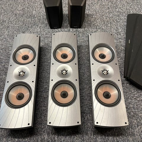 Paradigm 11seMk3 gulvhøyttalere laget i Canada. Høyttalerne har tilkoblinger for lydsignaler og er designet for bruk i lydanlegg. To store høytalere, Ca 20 år gamle? Høyde 110 cm, dybde 30 cm bredde 28 cm. Sorte.