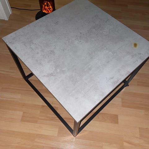 Solid bord med noen bruksmerker. Roborock kommer fint under her 😊