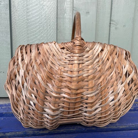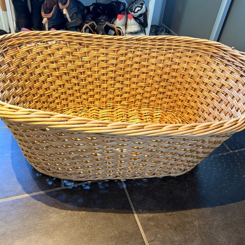 Stort eldre kurvfat med hanker. Fint til å sette/frakte avlange fat oppi. Lengde 51 cm, bredde 31 cm og høyde 9 cm. Pris 300kr. Må hentes I Skotselv. Sender ikke.