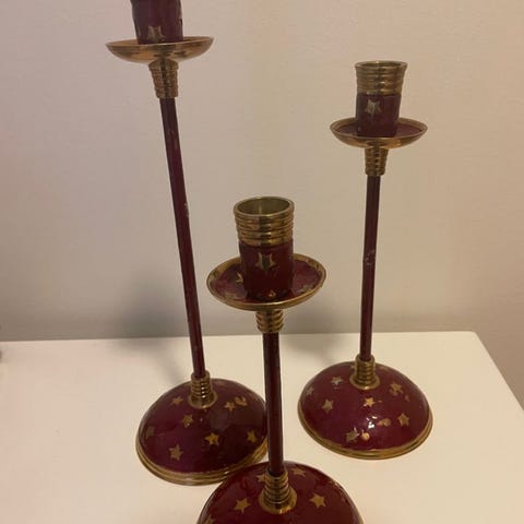 Veldig fine lysestaker, selges etter arv. Finere i fargen når lyset er tent på, får ikke frem på bilder så godt. Hele og fine. Den ene har kanskje en liten nag på kanten, synes ikke i det hele tatt, kan kun kjennes men fingeren. Gjerne se mine andre annonser for evt samfrakt, jeg har mange fine ting som jeg ikke bruker lenger. Pris 120.- for begge to.